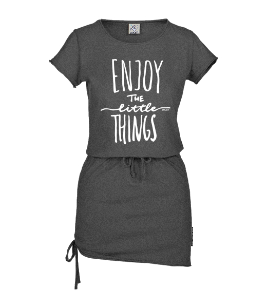 Women's dress URBAN with original prints for woman with design 1222 ENJOY THE LITTLE THINGS in color GRAFIT