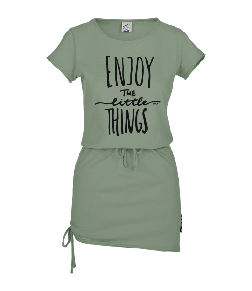 Women's dress URBAN with original prints for woman with design 1222 ENJOY THE LITTLE THINGS in color OLIVA