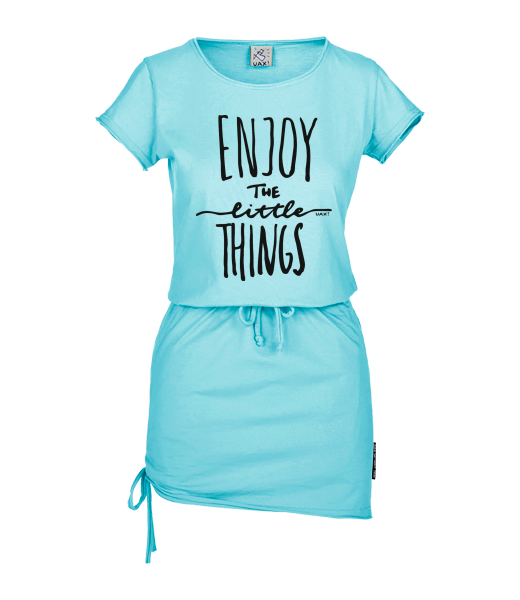Women's dress URBAN with original prints for woman with design 1222 ENJOY THE LITTLE THINGS in color PASTEL BLUE