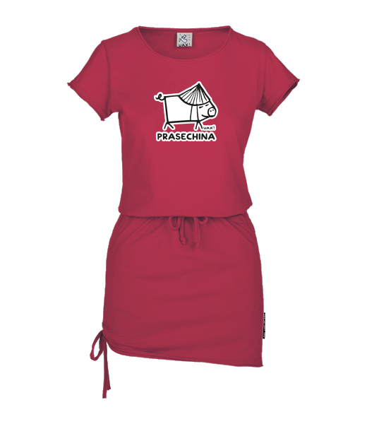 Women's dress URBAN with original prints for woman with design 1226 PRASECHINA in color CHILLY PEPPER RED