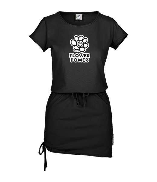 Women's dress URBAN with original prints for woman with design 1227 FLOWER POWER in color BLACK