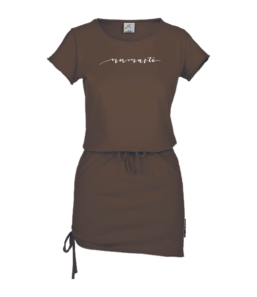 Women's dress URBAN with original prints for woman with design 1234 NAMASTE in color CHESTNUT