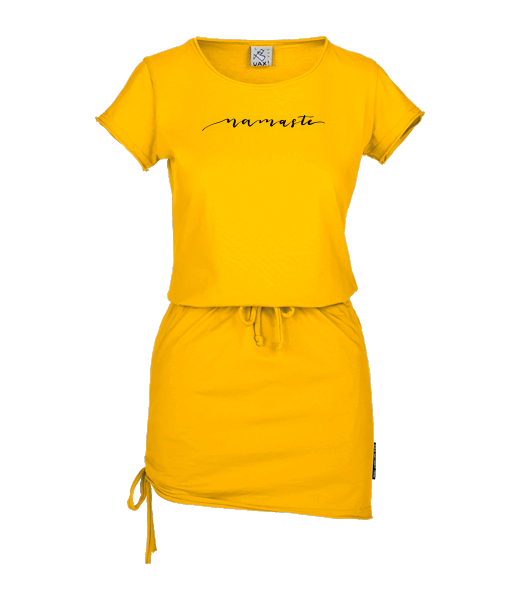Women's dress URBAN with original prints for woman with design 1234 NAMASTE in color GOLDEN CREAM