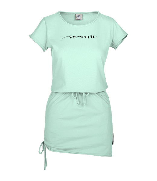 Women's dress URBAN with original prints for woman with design 1234 NAMASTE in color MINT