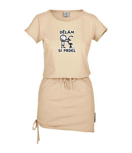 Women's dress URBAN with original prints for woman with design 1235 DĚLÁM SI PRDEL in color CARAMEL