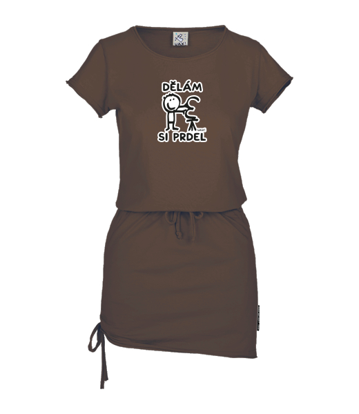 Women's dress URBAN with original prints for woman with design 1235 DĚLÁM SI PRDEL in color CHESTNUT