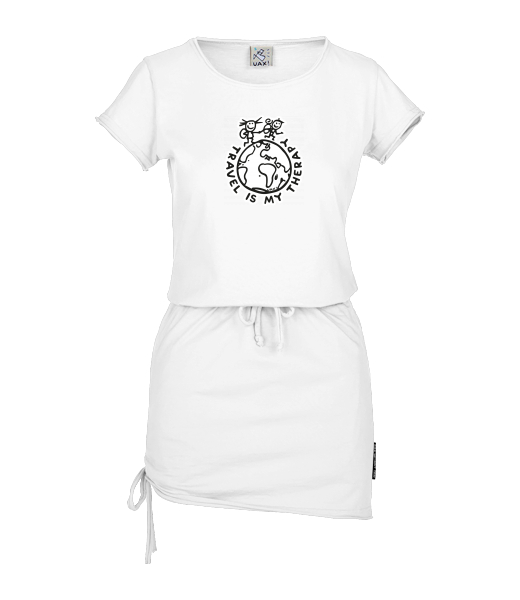 Women's dress URBAN with original prints for woman with design 1240 TRAVEL IS MY THERAPY in color WHITE