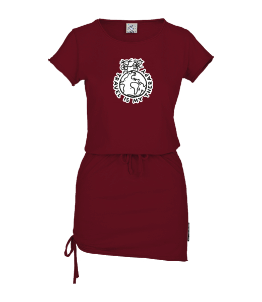 Women's dress URBAN with original prints for woman with design 1240 TRAVEL IS MY THERAPY in color DARK RED