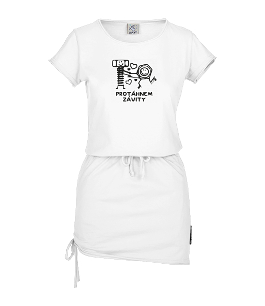 Women's dress URBAN with original prints for woman with design 1242 PROTÁHNEM ZÁVITY in color WHITE