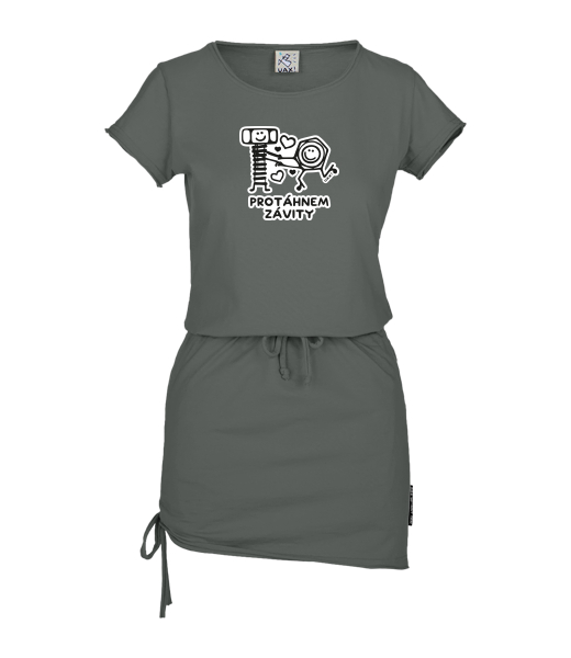 Women's dress URBAN with original prints for woman with design 1242 PROTÁHNEM ZÁVITY in color DARK GRAY