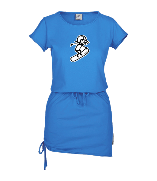 Women's dress URBAN with original prints for woman with design 1243 SNOWBOARD in color CAPRI BLUE