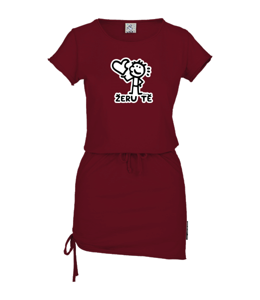 Women's dress URBAN with original prints for woman with design 1244 ŽERU TĚ in color DARK RED