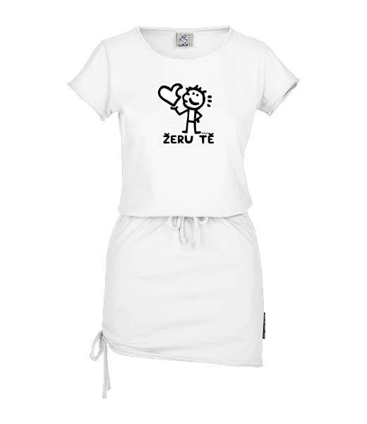 Women's dress URBAN with original prints for woman with design 1244 ŽERU TĚ in color WHITE