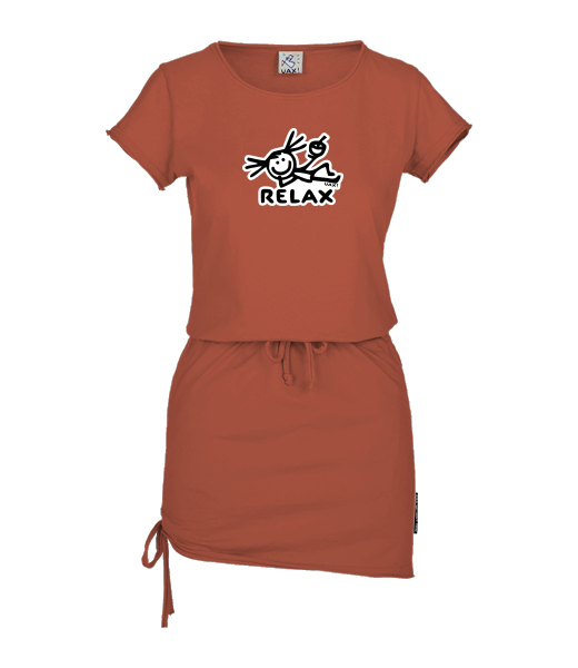 Women's dress URBAN with original prints for woman with design 1256 RELAX GIRL in color TERRA