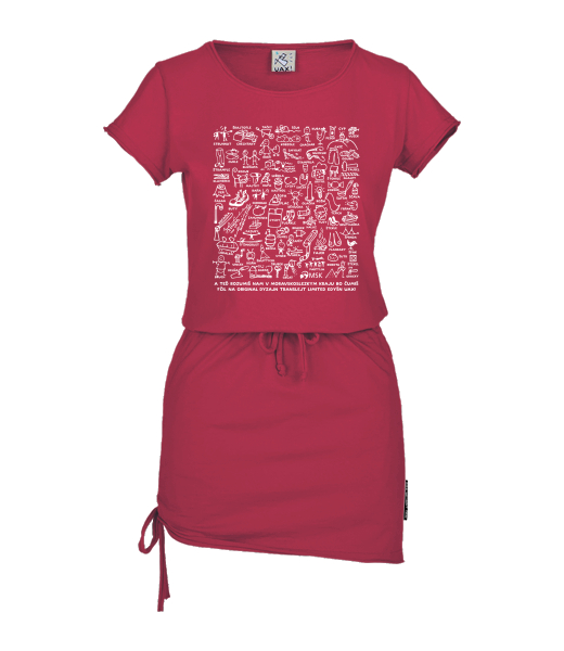 Women's dress URBAN with original prints for woman with design 1260 TRANSLEJT LIMITED EDYŠN 2.0 MSK in color CHILLY PEPPER RED