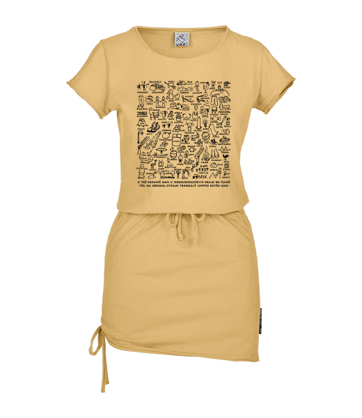Women's dress URBAN with original prints for woman with design 1260 TRANSLEJT LIMITED EDYŠN 2.0 MSK in color MUSTARD