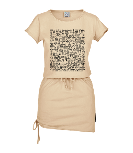Women's dress URBAN with original prints for woman with design 1261 BRNĚNSKÝ HANTEC in color CARAMEL