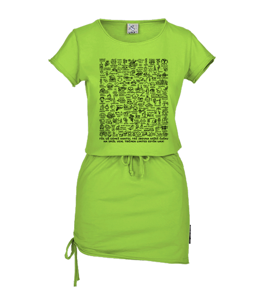 Women's dress URBAN with original prints for woman with design 1261 BRNĚNSKÝ HANTEC in color PARROT GREEN