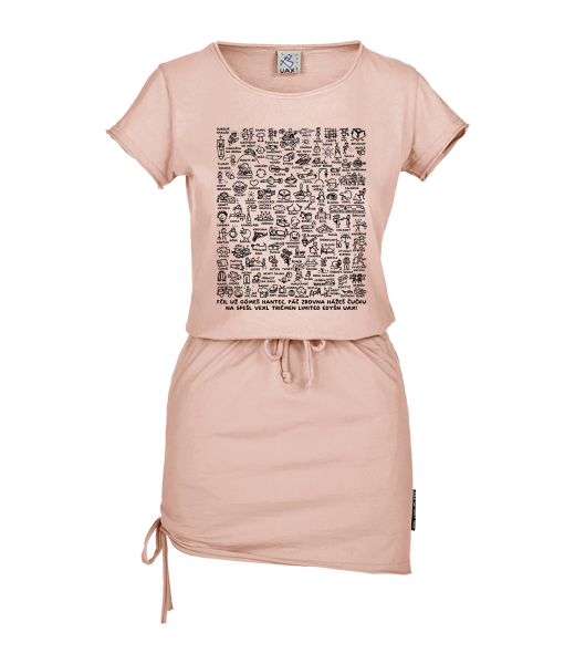 Women's dress URBAN with original prints for woman with design 1261 BRNĚNSKÝ HANTEC in color PEACH