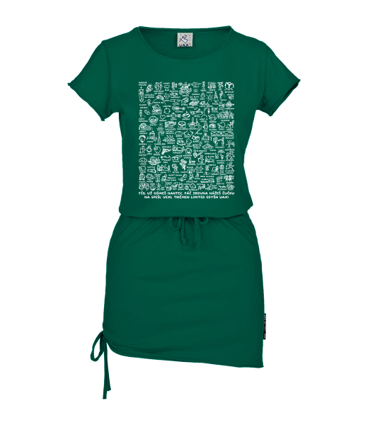 Women's dress URBAN with original prints for woman with design 1261 BRNĚNSKÝ HANTEC in color UNIVERSITY GREEN