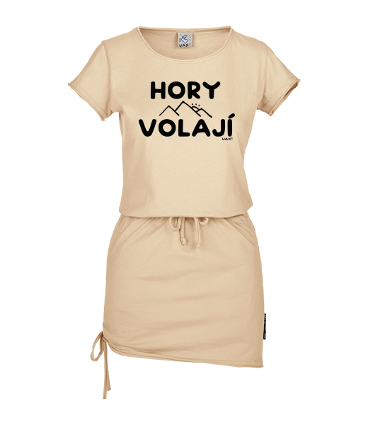 Women's dress URBAN with original prints for woman with design 1262 HORY VOLAJÍ in color CARAMEL