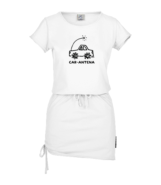Women's dress URBAN with original prints for woman with design 1284 CAR-ANTENA in color WHITE