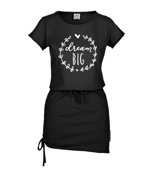 Women's dress URBAN with original prints for woman with design 1286 DREAM BIG in color BLACK