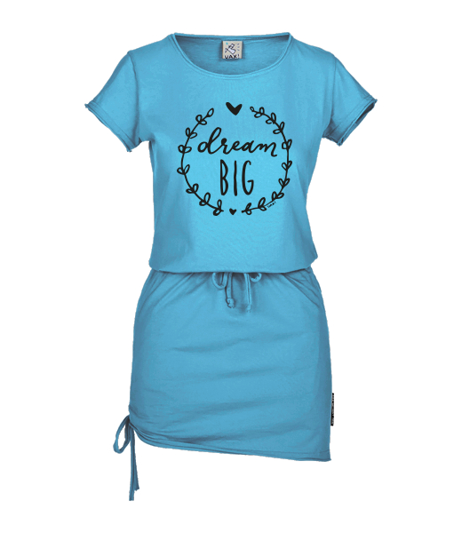 Women's dress URBAN with original prints for woman with design 1286 DREAM BIG in color BLUE ATOLL