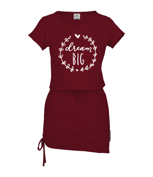 Women's dress URBAN with original prints for woman with design 1286 DREAM BIG in color DARK RED