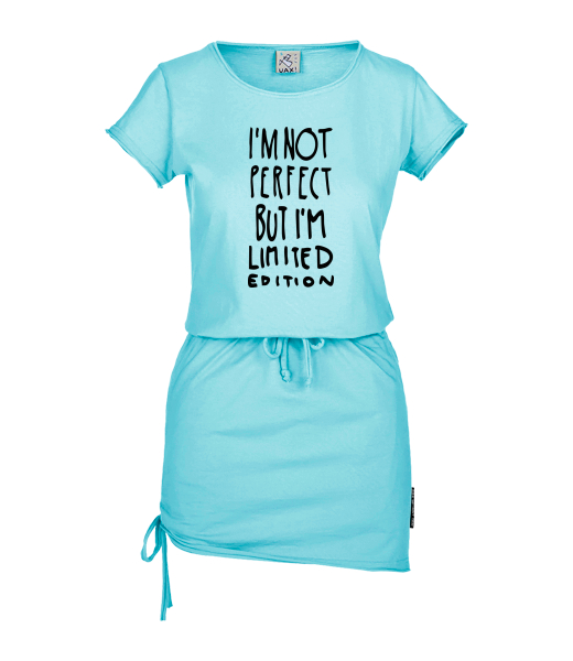 Women's dress URBAN with original prints for woman with design 1289 IM NOT PERFECT in color PASTEL BLUE