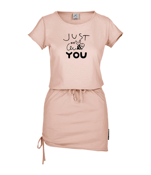 Women's dress URBAN with original prints for woman with design 1294 JUST BEE YOU in color PEACH
