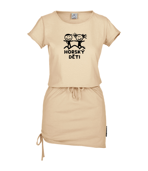 Women's dress URBAN with original prints for woman with design 1300 HORSKÝ DĚTI in color CARAMEL