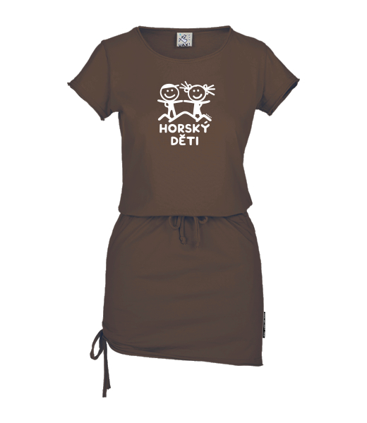 Women's dress URBAN with original prints for woman with design 1300 HORSKÝ DĚTI in color CHESTNUT