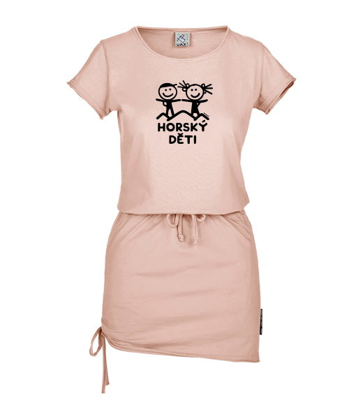 Women's dress URBAN with original prints for woman with design 1300 HORSKÝ DĚTI in color PEACH