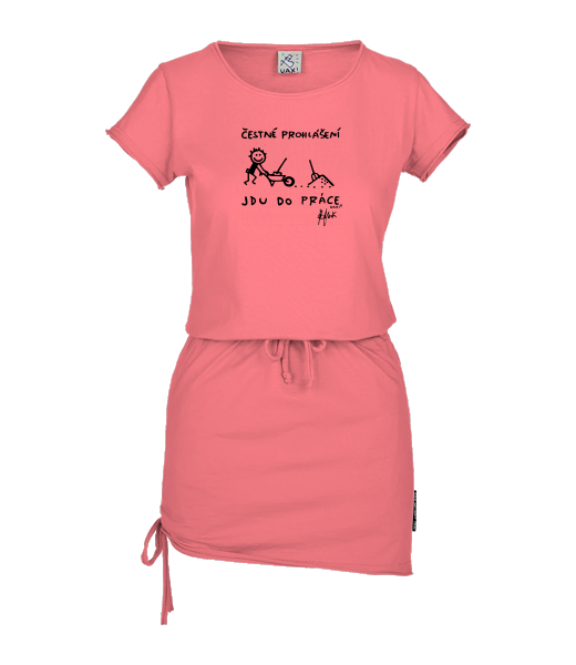 Women's dress URBAN with original prints for woman with design 1304 ČESTNÉ PROHLÁŠENÍ JDU DO PRÁCE in color LOSOSOVA