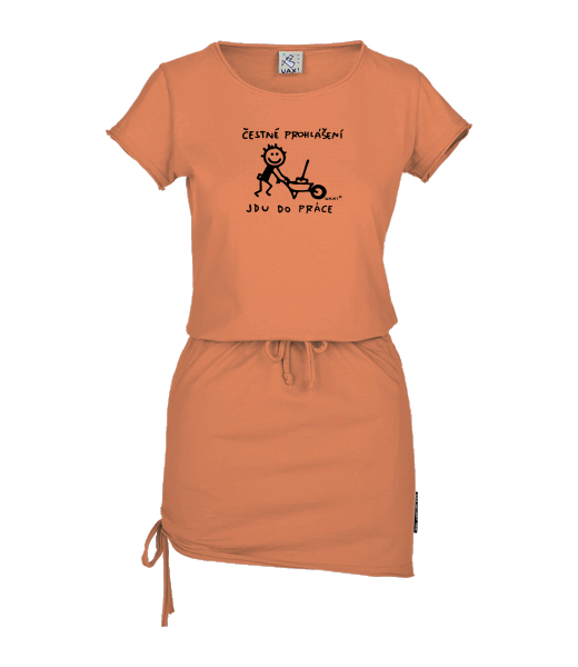 Women's dress URBAN with original prints for woman with design 1305 ČESTNÉ PROHLÁŠENÍ JDU DO PRÁCE 2 in color MANDARIAN ORANGE