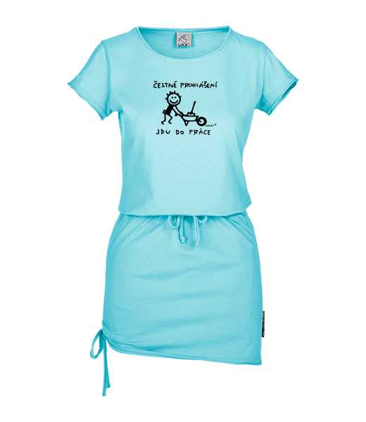 Women's dress URBAN with original prints for woman with design 1305 ČESTNÉ PROHLÁŠENÍ JDU DO PRÁCE 2 in color PASTEL BLUE