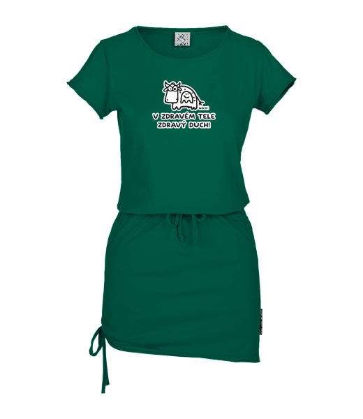 Women's dress URBAN with original prints for woman with design 1309 V ZDRAVÉM TELE ZDRAVÝ DUCH in color UNIVERSITY GREEN
