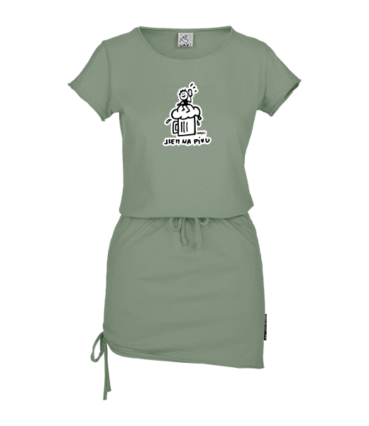 Women's dress URBAN with original prints for woman with design 1341 JSEM NA PIVU in color OLIVA