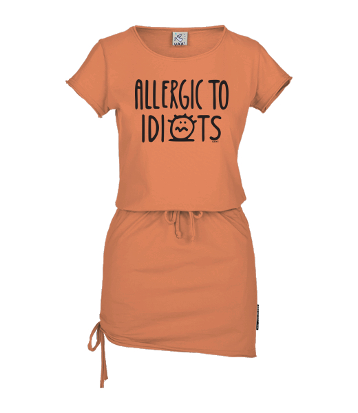 Women's dress URBAN with original prints for woman with design 1354 ALLERGIC TO IDIOTS in color MANDARIAN ORANGE