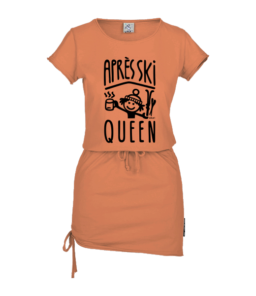 Women's dress URBAN with original prints for woman with design 1371 APRÉS SKI QUEEN in color MANDARIAN ORANGE