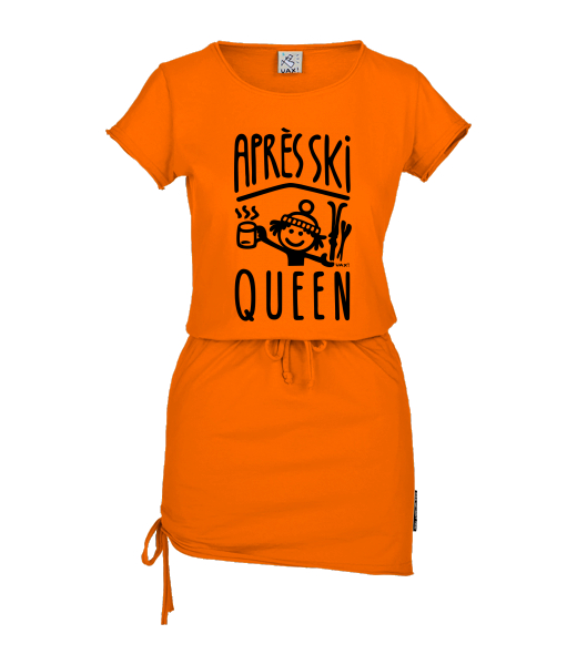 Women's dress URBAN with original prints for woman with design 1371 APRÉS SKI QUEEN in color SIGNAL ORANGE