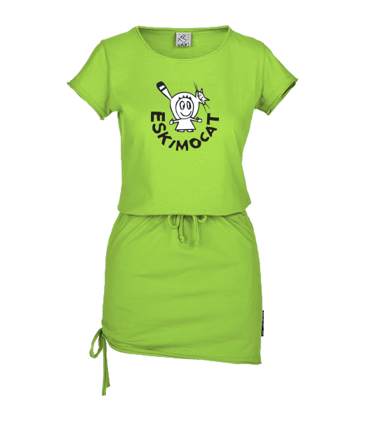 Women's dress URBAN with original prints for woman with design 375 ESKIMOCAT in color PARROT GREEN
