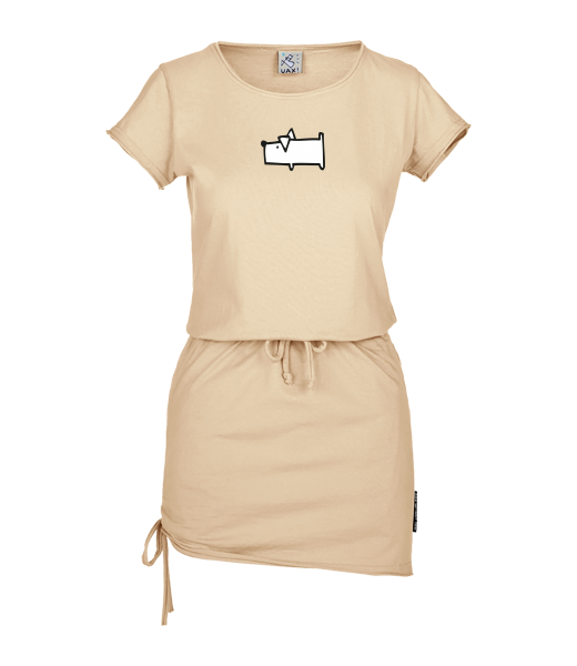 Women's dress URBAN with original prints for woman with design 482 DOG in color CARAMEL