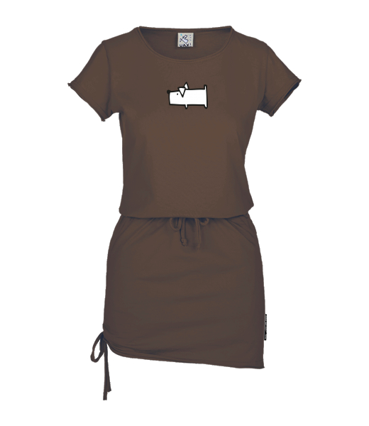 Women's dress URBAN with original prints for woman with design 482 DOG in color CHESTNUT