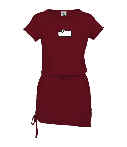 Women's dress URBAN with original prints for woman with design 482 DOG in color DARK RED