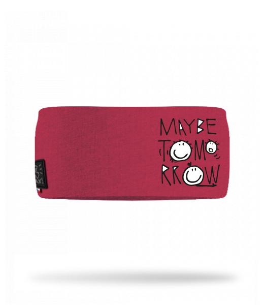 Cotton sports headband for woman with design 1001 MAYBE TOMORROW in color CHILLY PEPPER RED