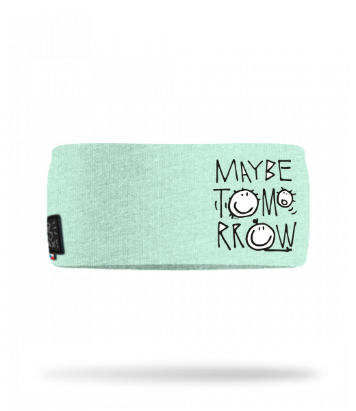 Cotton sports headband for woman with design 1001 MAYBE TOMORROW in color MINT