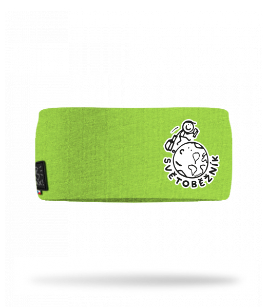 Cotton sports headband for woman with design 1047 SVĚTOBĚŽNÍK in color PARROT GREEN