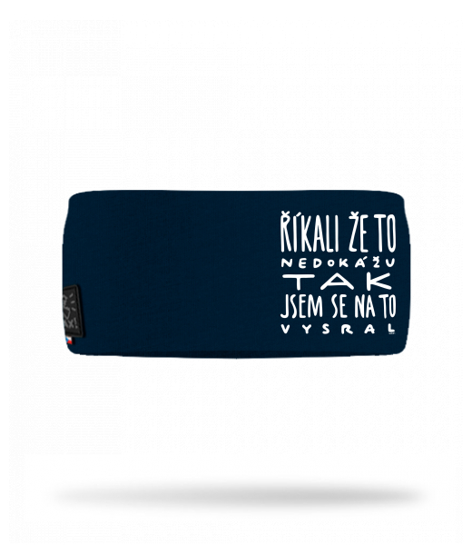 Cotton sports headband for woman with design 1366 ŘÍKALI ŽE TO NEDOKÁŽU TAK JSEM SE NA TO VYSRAL in color DARK NAVY